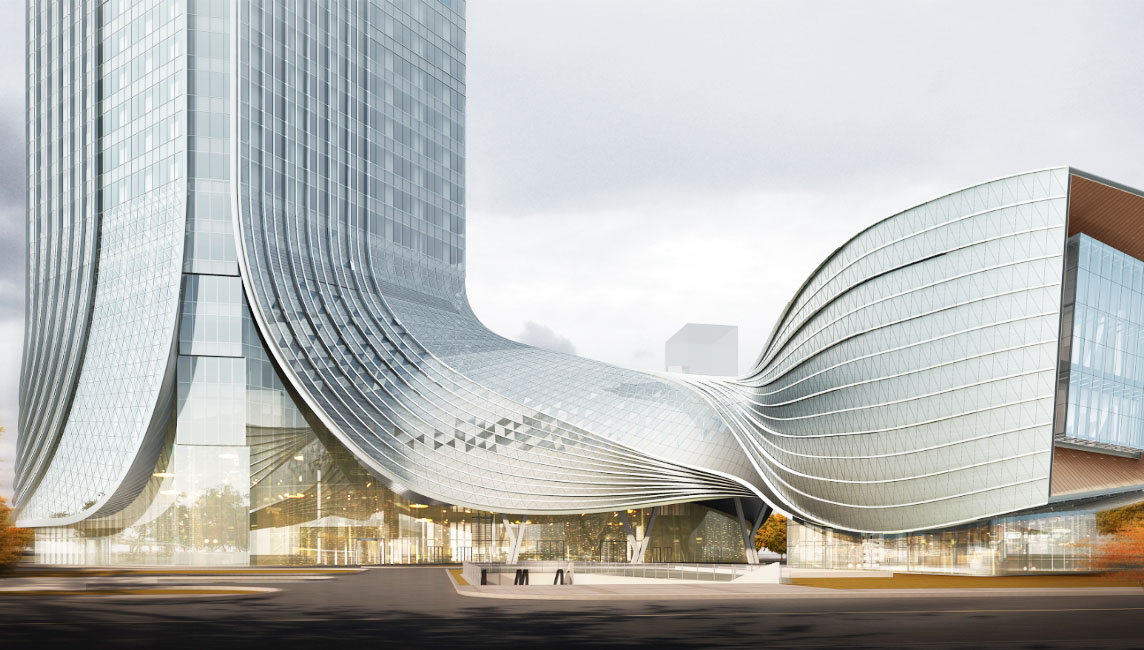 本工程位于珠海十字門中央商務區橫琴片區離岸金融島8號地塊,建筑面積約219220平方米,其中地上建筑面積約138531平方米,地下建筑面積約80689平方米。地上69層、地下4層。主要建設內容為甲級寫字樓、配套會展功能、商務公寓及商業服務設施。該項目取“蛟龍出海”的設計理念,裙樓部分體型尤其洄還扭轉、動感萬千;材料層次多、交錯復雜,設計及施工難度極大。